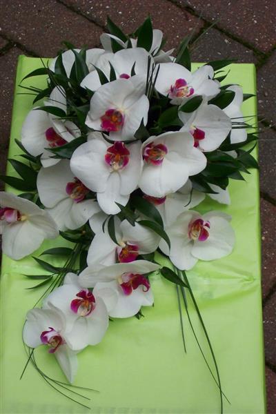 Shower style bouquet including Phalenopsis orchids