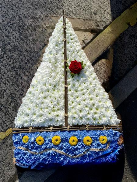 Beautifully created fresh flower Sailing Boat. Alternative colours can be requested.