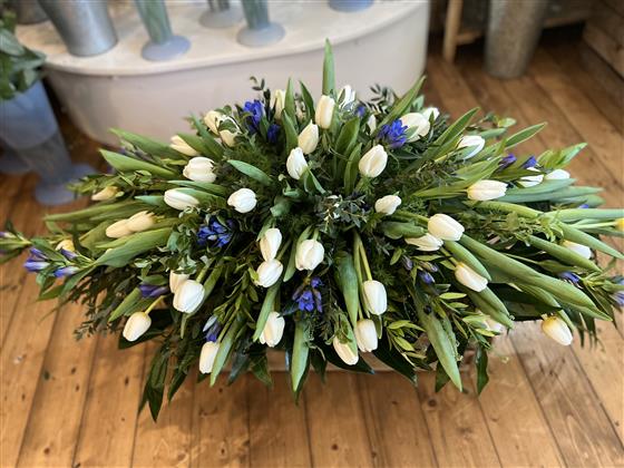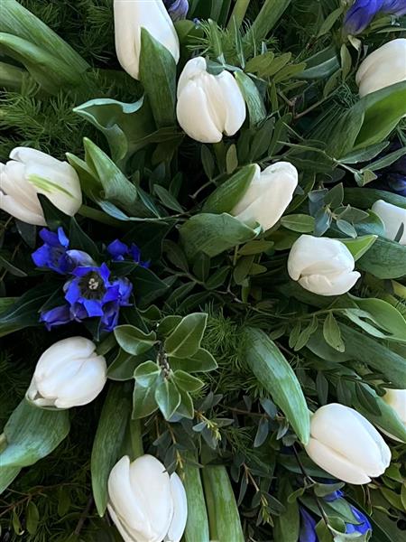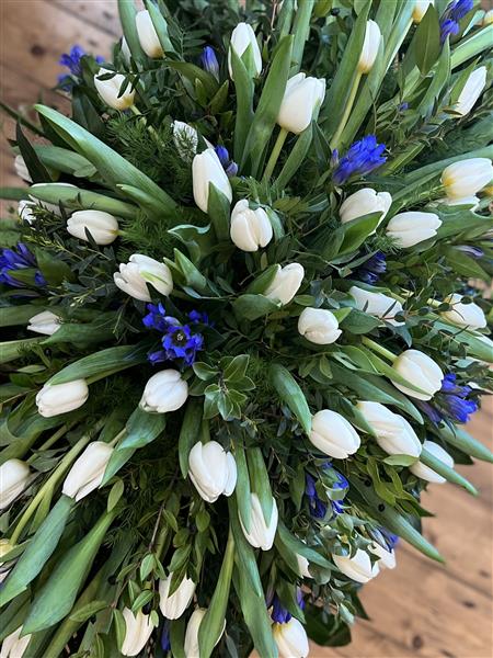 Elegant and natural tulip spray. With complimentary foliage. Please call to check availability.